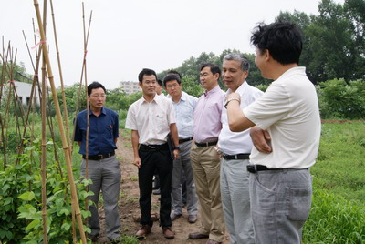 丁院長首先來到“大豆分子生物學與遺傳育種栽培試驗場”實地考察了大豆盆栽試驗,聽取了我所劉寶輝博士的研究進展匯報,丁院長向劉博士詳細了解了大豆分子遺傳育種的國際最新進展,指出:大豆育種研究要把分子遺傳育種與傳統育種結合起來,不但要考慮小尺度的基礎研究,也要探索今后的實際應用的技術問題,滿足區域發展的需求。