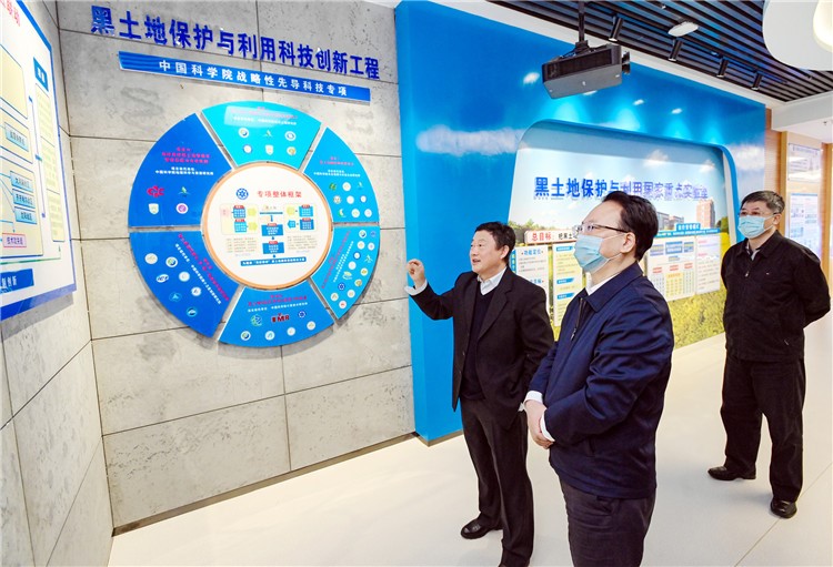 景俊海一行先后來到中科院大豆分子設(shè)計育種重點實驗室、黑土區(qū)農(nóng)業(yè)生態(tài)重點實驗室實地察看科研項目進展,詳細(xì)了解最新科研成果,鼓勵科研人員加強原創(chuàng)性、引領(lǐng)性科技攻關(guān),積極推動農(nóng)業(yè)技術(shù)與人工智能、大數(shù)據(jù)等新技術(shù)深度融合,盡快在生物育種、水土流失防治、鹽堿地治理等領(lǐng)域?qū)崿F(xiàn)突破。