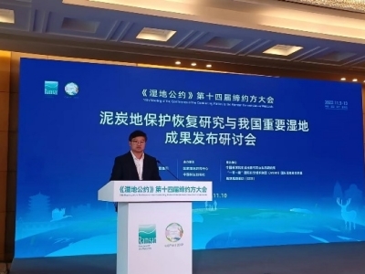 泥炭地碳儲量巨大,對于減緩氣候變化具有重要意義。中國始終把應對氣候變化、開展泥炭地保護管理視作自身可持續發展的內在要求和構建人類命運共同體的責任擔當。11月10日,在《濕地公約》第十四屆締約方大會期間,“泥炭地保護恢復研究與我國重要濕地成果發布”研討會成功召開。作為東道國系列重要活動之一,會議聚焦我國泥炭地保護的基礎理論及關鍵技術問題開展研討,旨在推動我國泥炭地學的理論體系構建和泥炭地恢復技術的快速發展,服務國際履約,助力實現“雙碳”戰略。會議同步進行了濕地領域重要成果的發布與推介。國家林業和草原局濕地管理司作為指導單位,由國家濕地研究中心和中國林業出版社聯合主辦,中國科學院東北地理與農業生態研究所、“一帶一路”國際科學組織聯盟(ANSO)國際濕地研究聯盟、地球觀測組織(GEO)承辦,會議采用線上線下相結合的方式,250余人參加了會議。