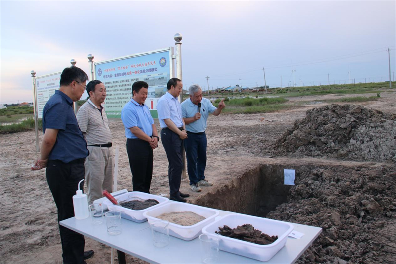 慰問調(diào)研期間,李和風(fēng)一行考察了大安堿地生態(tài)試驗站及“黑土糧倉”科技會戰(zhàn)大安示范區(qū)示范田,大安堿地生態(tài)試驗站站長梁正偉研究員詳細介紹基本情況與工作進展。