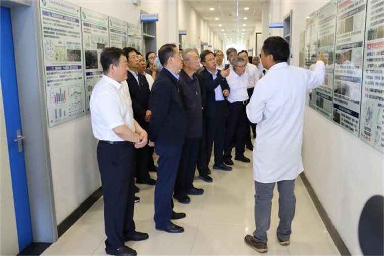 在農(nóng)業(yè)樓,調(diào)研組一行聽取了黑土地保護性耕作、鹽堿地綜合治理、耐鹽堿種質(zhì)資源創(chuàng)制等工作情況。在種質(zhì)資源樓,聽取了分子設計育種工作進展,現(xiàn)場查看了大豆基因突變體庫、高通量作物表型組分析系統(tǒng)及“東生”系列大豆新品種選育與轉(zhuǎn)化工作。在研究所展館,聽取了研究所歷史沿革、學科布局、承擔任務、科技平臺、人才隊伍、黨建工作及發(fā)展規(guī)劃等情況的介紹。