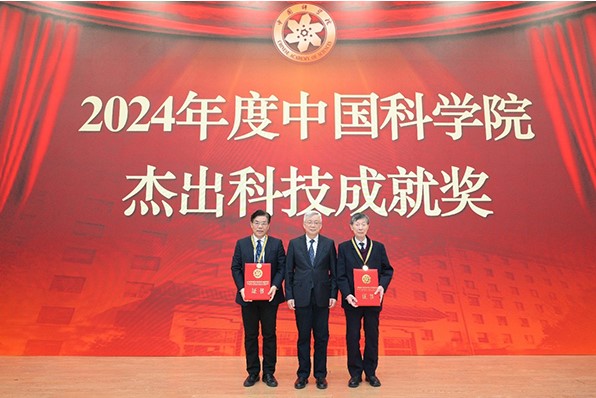 侯建國為獲得2024年度中國科學(xué)院杰出科技成就獎個人成就獎的陳立泉院士、陳仙輝院士頒獎