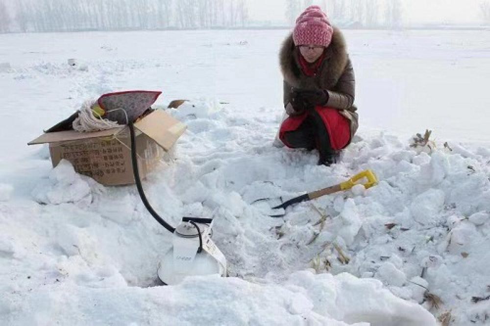 梁愛珍在雪地里做土壤呼吸監(jiān)測