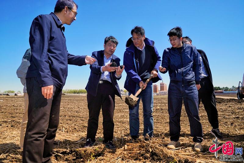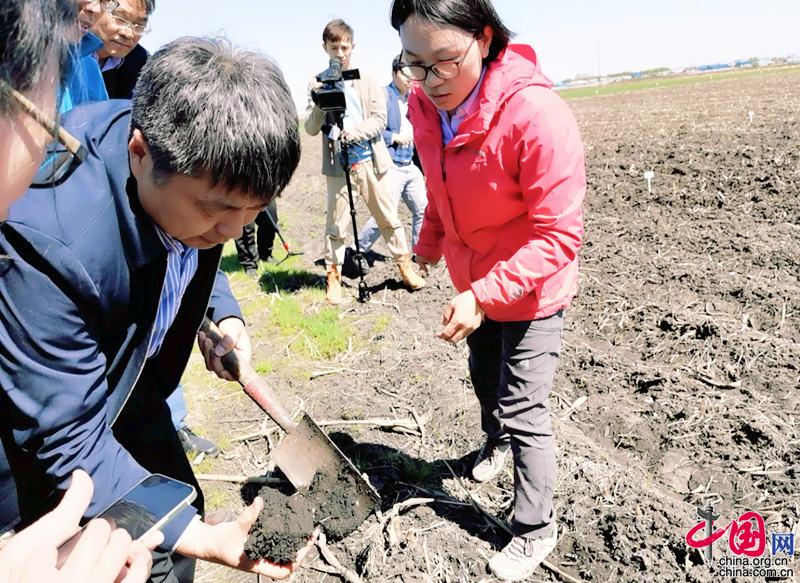 5月13日,探訪中國科學(xué)院“黑土糧倉”科技會(huì)戰(zhàn)“龍江模式”示范區(qū)。圖為中國科學(xué)院東北地理與農(nóng)業(yè)生態(tài)研究所研究員韓曉增(左三)介紹黑土地保護(hù)情況。中科院科技攝影聯(lián)盟供圖