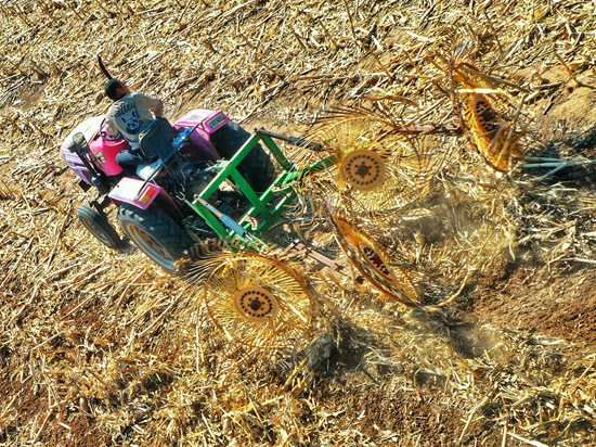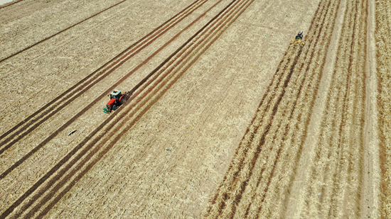 吉林省四平市梨樹縣農(nóng)民在廣袤黑土地上作業(yè)。