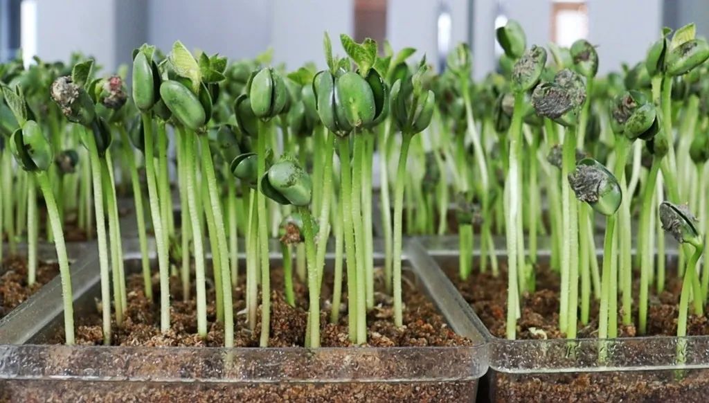 實(shí)驗(yàn)室里的大豆種子發(fā)出嫩綠的芽。吳樹江 攝
