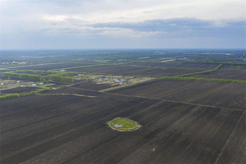 位于黑龍江省海倫市前進鎮(zhèn)光榮村的中國科學(xué)院東北地理與農(nóng)業(yè)生態(tài)研究所海倫黑土水土保持監(jiān)測研究站(5月23日攝,無人機照片)。