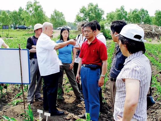 中科院東北地理所研究員與趙其國院士討論黑土地變硬的問題。圖/韓曉增