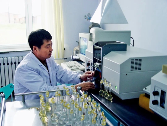 韓曉增在實驗室測試黑土地土壤微量營養(yǎng)元素。圖/韓曉增