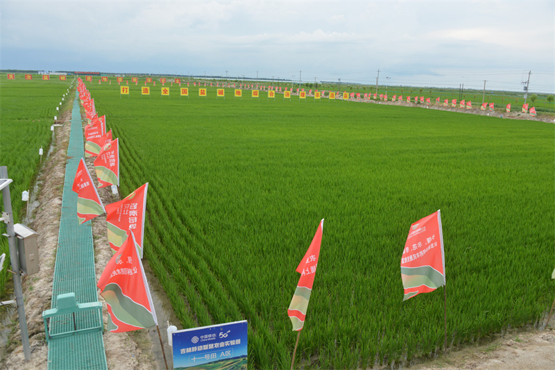 記者看到,在華清農(nóng)業(yè)的試驗(yàn)田里,插秧40天的水稻已長(zhǎng)到半米多高。王長(zhǎng)志介紹,水稻品種為松遼五號(hào),如今一株已分蘗成30株,每株預(yù)估能產(chǎn)150粒米,今年畝產(chǎn)量能達(dá)1100斤。