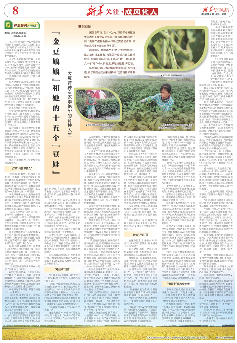 【新華每日電訊】“金豆娘娘”和她的十五個(gè)“豆娃”——大豆育種專家李艷華的育種人生