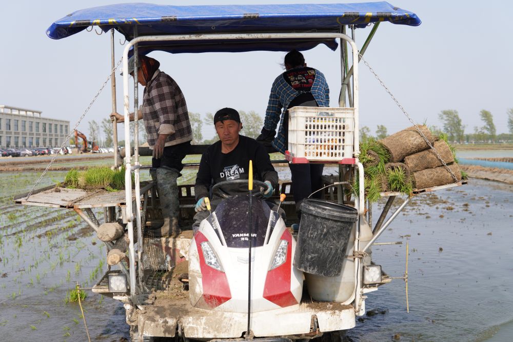 春耕時節,遼寧省盤錦市一處稻田正在進行插秧作業。新華社記者 武江民 攝