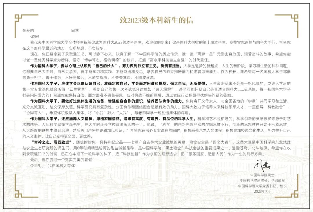 【中國科學院大學】首封發出!國科大本科錄取通知書里有“北斗七星”!