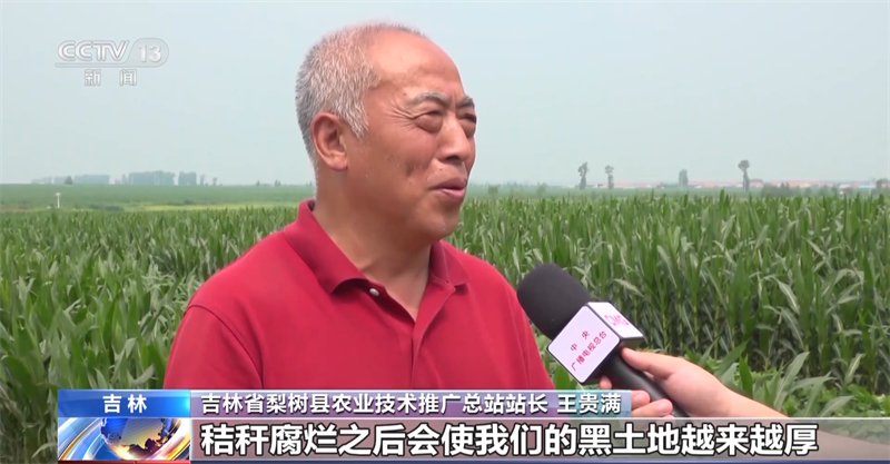 吉林省梨樹縣農(nóng)業(yè)技術(shù)推廣總站站長 王貴滿:秸稈腐爛之后會使我們的黑土地越來越厚、越來越肥。秸稈全量覆蓋的條件下,有機質(zhì)以每年0.1%的速度在提升,蚯蚓的數(shù)量成倍增長,多的地方能達到七八十條。