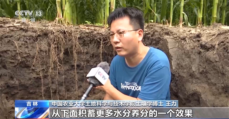 中國農(nóng)業(yè)大學土地科學與技術(shù)學院土壤學博士 王力:這就是保護性耕作促進根系下扎,從下面積蓄更多水分養(yǎng)分的一個效果。