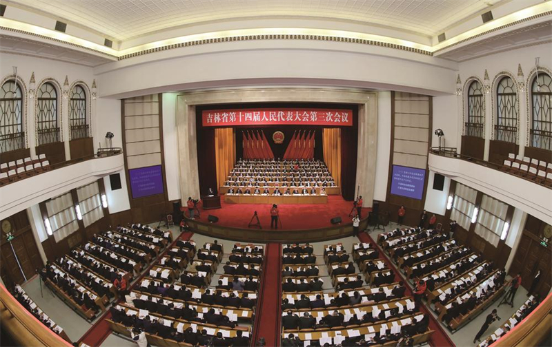 1月24日,省十四屆人大三次會(huì)議在長(zhǎng)春開幕。圖為大會(huì)會(huì)場(chǎng)。