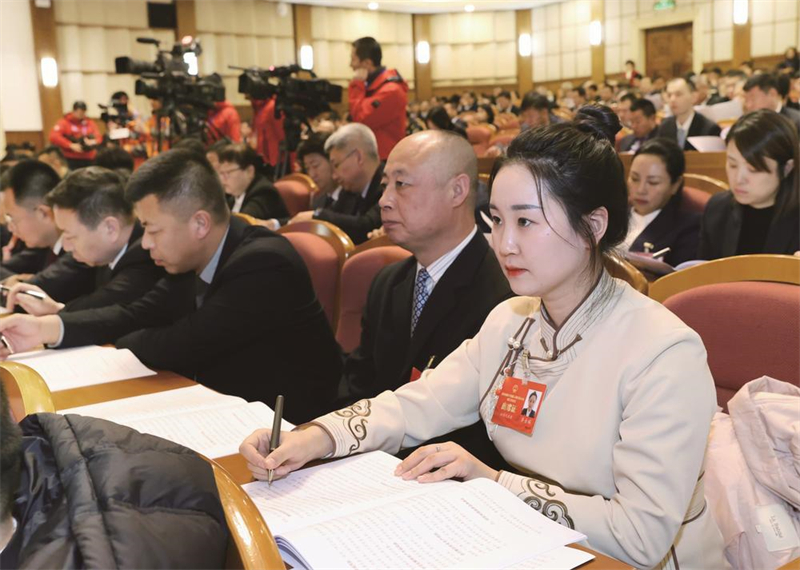 與會(huì)代表認(rèn)真聽取政府工作報(bào)告。