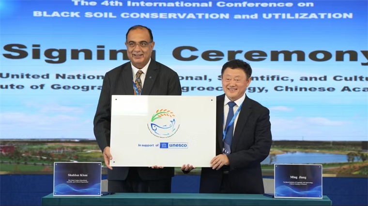 開幕式上,東北地理所與聯(lián)合國教科文組織東亞地區(qū)辦事處簽訂了合作意向書,與俄羅斯科學(xué)院索恰瓦地理研究所簽訂了合作備忘錄。聯(lián)合國教科文組織東亞地區(qū)辦事處主任兼代表Shahbaz Khan先生將“國際生物多樣性與糧食安全青年聯(lián)合會”的牌匾親手授予東北地理所所長姜明,進一步夯實了東北地理所與相關(guān)單位的國際交流與合作。