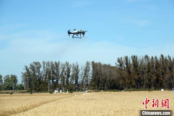 北大荒曙光農(nóng)場(chǎng),項(xiàng)目團(tuán)隊(duì)用大型無人機(jī)在示范農(nóng)田上空開展相關(guān)作業(yè)。中新網(wǎng)記者 孫自法 攝