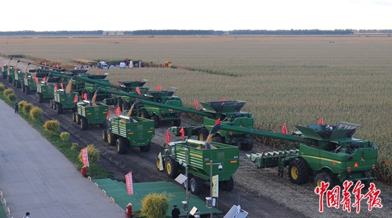 友誼農(nóng)場(chǎng)“萬(wàn)畝大地號(hào)”上的秋收?qǐng)鼍啊V星鄨?bào)·中青網(wǎng)見(jiàn)習(xí)記者?李思攝
