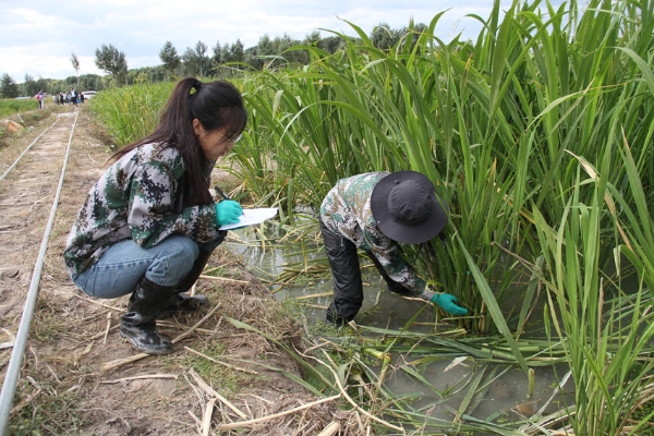 在鎮(zhèn)賚縣坦途鎮(zhèn)的蘇吉匯農(nóng)業(yè)科技有限公司茭白田里,曾經(jīng)白茫茫一片的重度鹽堿地,如今已化作千畝碧波,碧綠的茭白葉泛著油亮的光澤,隨風(fēng)起伏,仿佛一片綠色的海洋。測(cè)產(chǎn)專家們就走進(jìn)中國(guó)科學(xué)院東北地理與農(nóng)業(yè)生態(tài)研究所在大田布置的控制實(shí)驗(yàn)基地,交流研究進(jìn)展和定位監(jiān)測(cè)記錄的結(jié)果,大家對(duì)單項(xiàng)技術(shù)以及技術(shù)集成的應(yīng)用效果表現(xiàn)出極大興趣和認(rèn)可。專家組隨后來(lái)到生產(chǎn)田塊,“這片葉子顏色深綠,說明肥水管理到位。”“個(gè)別葉鞘下部出現(xiàn)少量褐斑,后期要注意針對(duì)性處理。”測(cè)產(chǎn)還未開始,專家們就已俯身田間,或蹲或立,仔細(xì)查看茭白的株高、葉色、根系發(fā)育情況。他們時(shí)而用手指輕捻葉片,感受葉片的質(zhì)地;時(shí)而用尺測(cè)量株行距,精準(zhǔn)記錄數(shù)據(jù)。他們還不時(shí)與身旁的農(nóng)戶和企業(yè)技術(shù)人員交流意見,為這片茭白田的豐收“把脈問診”。陽(yáng)光灑在他們專注的臉上,汗水順著鬢角滑落,卻絲毫沒有影響他們工作的熱情。