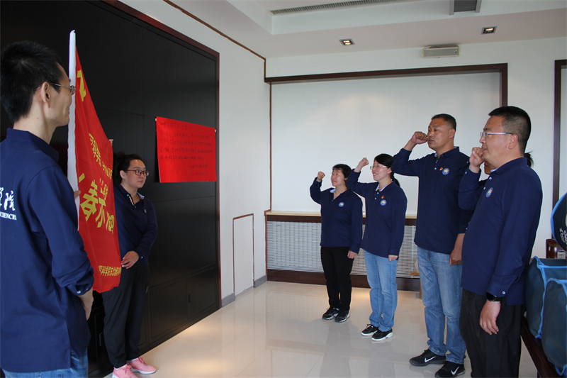 為凝聚力量,充分發(fā)揮示范區(qū)臨時黨支部的作用,提升示范區(qū)科研工作者的使命感、自豪感,舉行了臨時黨支部授旗儀式,王曉慧為臨時黨支部授旗,臨時黨支部黨員代表宣誓奮斗誓言。