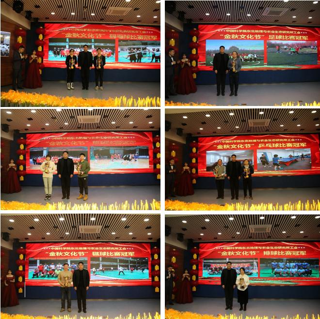 在所領(lǐng)導(dǎo)的關(guān)心支持下,所工會(huì)組織各分工會(huì)利用工作以外的時(shí)間加班加點(diǎn)精心籌備,最終為全所職工、研究生呈現(xiàn)出了一場(chǎng)構(gòu)思巧妙、編排合理、舞姿優(yōu)美、歌聲動(dòng)人的高質(zhì)量文化盛宴。茶話會(huì)上,所工會(huì)還表彰了2023年度優(yōu)秀工會(huì)工作者、優(yōu)秀工會(huì)積極分子,并為“興土人才”頒獎(jiǎng);舉辦了第二屆金秋文化節(jié)閉幕式,為2023年度各項(xiàng)體育比賽冠軍集體和個(gè)人頒發(fā)獎(jiǎng)杯。此次活動(dòng)還表彰了參加“學(xué)習(xí)二十大 健步新征程”中國(guó)科學(xué)院百日健步行本所排名前三名的工會(huì)會(huì)員,觀眾互動(dòng)游戲更是將聯(lián)歡會(huì)推向了高潮,大家熱情高漲,現(xiàn)場(chǎng)歡笑和掌聲不斷,活動(dòng)現(xiàn)場(chǎng)充滿了濃郁的文化氣息與喜悅氛圍。