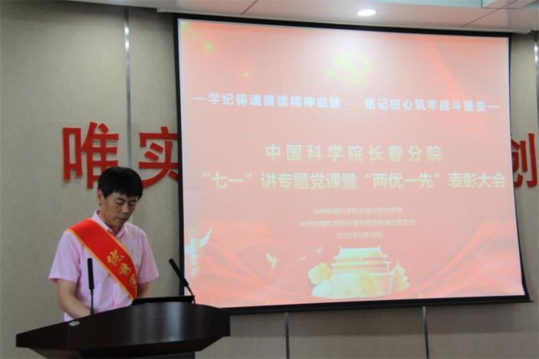 為深入學習貫徹習近平總書記關于黨紀學習教育的重要講話和重要指示精神,熱烈慶祝中國共產黨成立103周年,6月28日上午,中國科學院長春分院隆重舉辦2024年度“七一”講專題黨課暨“兩優一先”表彰大會。會上,中共中國科學院長春分院分黨組、中共中國科學院長春分院系統單位委員會對在長春分院系統單位過去一年黨建工作中,表現突出的集體和個人給予表彰。