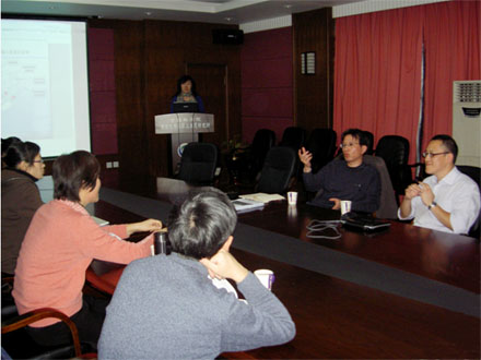 參觀實(shí)驗(yàn)室后,水文與水資源學(xué)科組全體成員與孫廣智博士就實(shí)驗(yàn)室目前承擔(dān)的科研任務(wù)和未來發(fā)展設(shè)想進(jìn)行了深入的交流和探討。唐艷凌博士和在讀博士生李紅艷結(jié)合自己的研究方向分別做了題為《退化鹽堿濕地生態(tài)補(bǔ)水機(jī)制研究》和《濕地水質(zhì)凈化機(jī)理模擬研究》的匯報(bào),孫廣智博士就濕地水質(zhì)凈化研究思路、模擬實(shí)驗(yàn)方案等方面提供了寶貴的意見和建議。本次學(xué)術(shù)活動有助于推動我所在濕地水質(zhì)凈化研究方面開展更加廣泛的國際合作與交流。