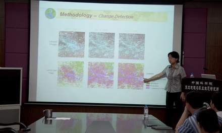 此次來訪期間,唐俊梅博士與我所土地系統(tǒng)遙感學(xué)科組的科研人員和學(xué)生進(jìn)行了廣泛交流和深入探討,對(duì)遙感和GIS技術(shù)支撐下的土壤侵蝕研究、脆弱性研究、土壤水分被動(dòng)微波遙感反演和土地覆被分類等的研究思路、實(shí)驗(yàn)方案等方面提出寶貴意見和建議,并指導(dǎo)學(xué)生論文寫作,幫助學(xué)生修改英文稿件,開闊了學(xué)生的研究思路,對(duì)該學(xué)科組研究生的培養(yǎng)起到了積極作用。通過交流也增進(jìn)了雙方的相互了解,有助于推動(dòng)我所土地系統(tǒng)遙感研究開展更加廣泛的國際合作與交流。
