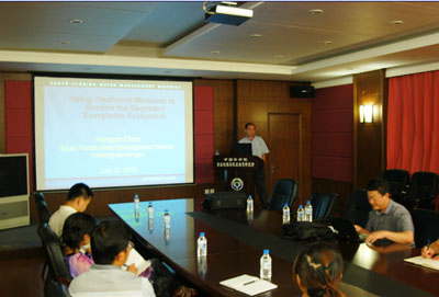 2010年7月12-14日,應我所濕地生態與環境重點實驗室的邀請,美國南佛羅里達水資源管理局陳竑竣博士來我所進行學術交流和訪問。陳竑竣博士是美國南佛羅里達水資源管理局環境科學家,專門從事濕地植物生態學方面的研究。