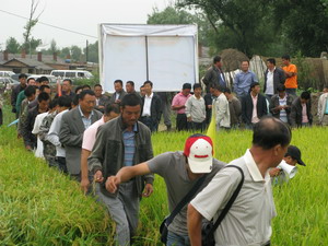 早在今年8月28日,為了加大新品種的認知度和惠農(nóng)推廣,讓稻農(nóng)實地了解“東稻4號”的生長特性與田間表現(xiàn),楊福研究員在白城市吉林油田洮河農(nóng)場組織召開了“東稻4號”水稻推廣現(xiàn)場會。來自中國科學院長春分院、吉林省種子管理總站、白城市種子管理站、白城市農(nóng)業(yè)科學院和吉林西部各市縣水稻辦的專家領(lǐng)導,以及全省各地的經(jīng)銷商、農(nóng)民代表共計150多人參加了現(xiàn)場會,與會人員反響強烈,一致認為“東稻4號”長勢喜人、豐產(chǎn)性好,有望取代目前吉林西部推廣面積最大的同熟期水稻品種“長白9號”。中國科學院農(nóng)業(yè)項目辦原主任王大生等一行9月4日親臨現(xiàn)場考察時對“東稻4號”良好長勢與產(chǎn)量潛力也給予了充分肯定。指出,一定要積極組織申報國家農(nóng)業(yè)科技成果轉(zhuǎn)化基金項目支持,加大“東稻4號”推廣力度,把優(yōu)秀的農(nóng)業(yè)科技成果迅速轉(zhuǎn)化為生產(chǎn)力,為農(nóng)民造福。