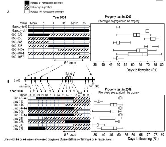 生育期長度是決定大豆產(chǎn)量的重要因素之一,并與種植緯度、種植季節(jié)密切相關(guān),是育種主要選擇目標(biāo)性狀,而生育期是光周期反應(yīng)的重要指標(biāo)。