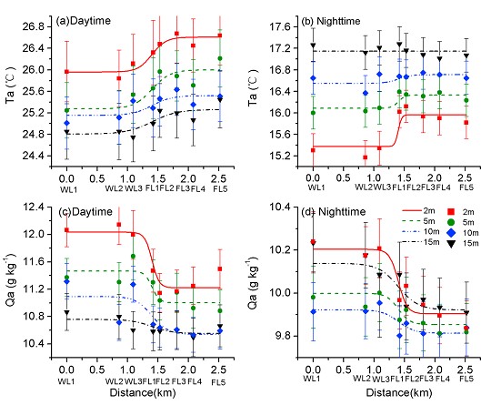 圖1濕地-農(nóng)田邊緣帶2008年氣溫(Ta,℃)與比濕(Qa,g kg-1)垂直變化模式