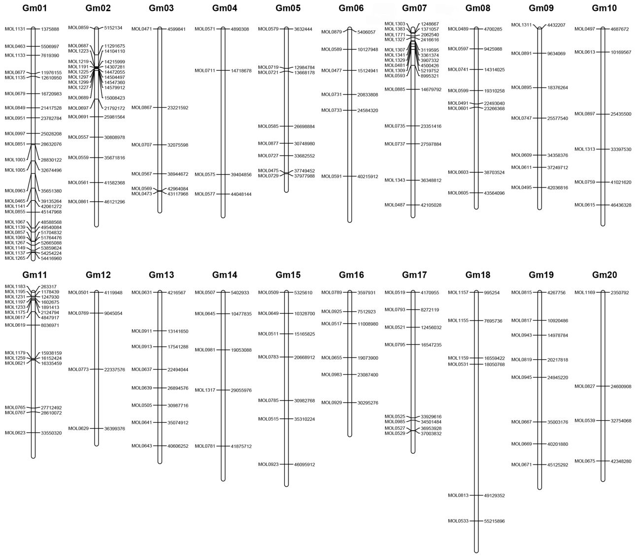 研究組成員通過對(duì)大豆“菏豆12”品種的全基因組重測(cè)序,獲得了與“Willams82”品種存在差異的49,276個(gè)INDEL分子標(biāo)記和242,059個(gè)SNP分子標(biāo)記。通過對(duì)其中243個(gè)INDEL分子標(biāo)記的實(shí)驗(yàn)驗(yàn)證,建立了165個(gè)INDEL分子標(biāo)記大豆分子標(biāo)記物理圖譜。利用該圖譜和進(jìn)一步開發(fā)的INDEL分子標(biāo)記成功地將大豆葉皺突變體定位到了360Kbp的關(guān)聯(lián)區(qū)間。本研究為大豆重要農(nóng)藝性狀基因克隆和分子輔助育種等研究提供了重要的研究手段。