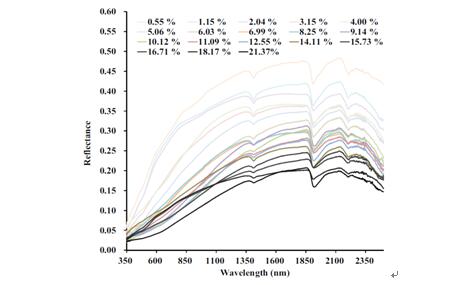 圖 1三江平原不同土壤有機質含量的光譜變化