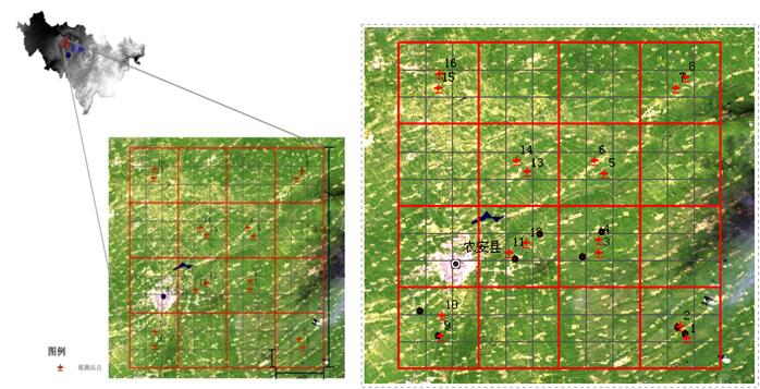 圖2. 大范圍(36km×36km)衛(wèi)星數(shù)據(jù)產(chǎn)品驗(yàn)證地面觀測(cè)網(wǎng)絡(luò)的布設(shè)