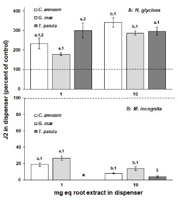 論文信息和鏈接:C Wang, EP Masler and ST Rogers. 2018. Response of Heterodera glycines and Meloidogyne incognita infective juveniles to root tissues, root exudates, and root extracts from three plant species. Plant Disease, https://doi.org/10.1094/PDIS-09-17-1445-RE.