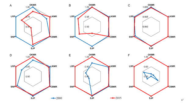 東北地理所地理景觀遙感和城市森林與濕地團隊的研究人員利用Landsat系列衛星遙感影像解譯獲取的2000和2015年土地覆蓋數據,探討了國家實施一系列生態工程以來東北地區的土地覆蓋變化特征,進而利用InVEST模型分析了東北地區生態系統服務的時空格局及其地理空間異質性,深入討論了不同政策影響下的東北地區土地覆蓋變化特征,及其對生態系統服務變化的影響。