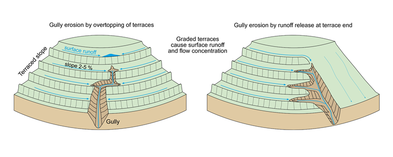 圖1 傾斜梯田匯集地表徑流導致切溝發育