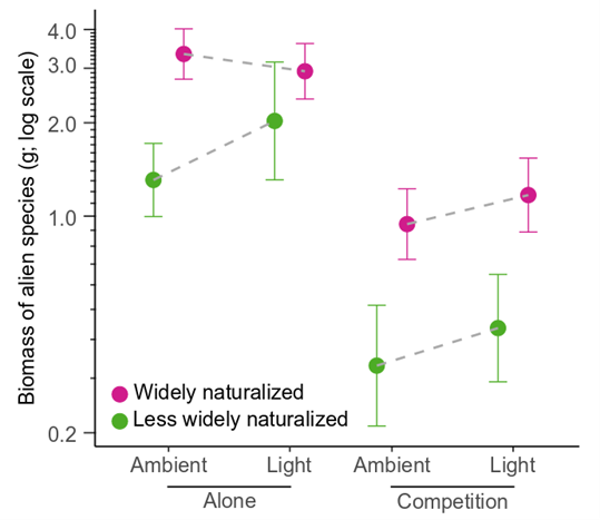 Speiβer B., Liu Y*.& van Kleunen M. (2021) Biomass responses of widely and less‐widely naturalized alien plants to artificial light at night. Journal of Ecology. https://doi.org/10.1111/1365-2745.13607