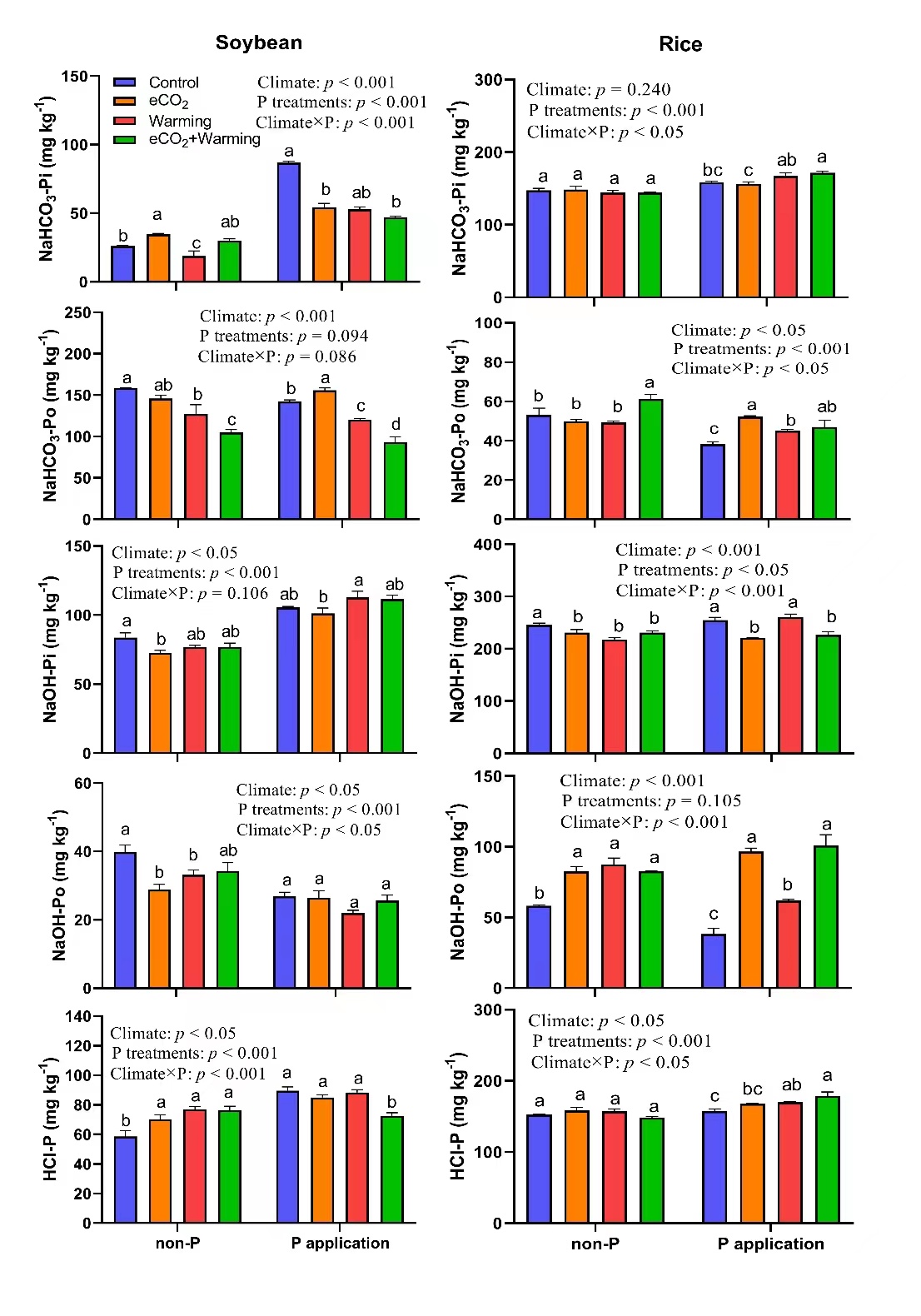 氣候變化深刻影響農(nóng)田生態(tài)系統(tǒng)養(yǎng)分循環(huán)。磷素(P)作為農(nóng)田生態(tài)系統(tǒng)中第二重要的植物營養(yǎng)元素,能夠調(diào)節(jié)作物對氣候變化的適應(yīng)性。因此,研究作物磷吸收和土壤磷動(dòng)態(tài)對氣候變化下維持農(nóng)業(yè)生態(tài)系統(tǒng)可持續(xù)性至關(guān)重要。然而,大氣CO2濃度和溫度升高對作物生長和土壤磷組分的影響,以及相關(guān)微生物機(jī)制鮮有研究。