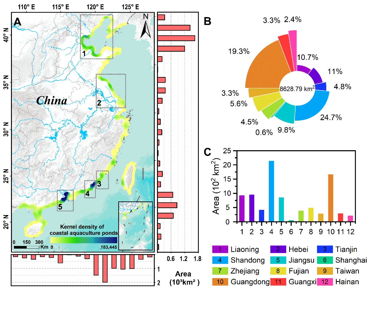 圖1 2021年中國濱海養殖池空間分布現狀