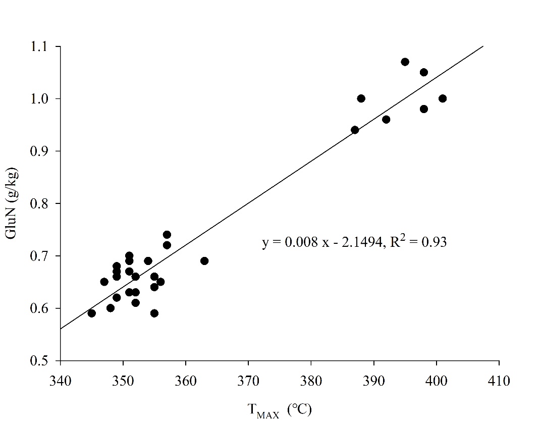 圖2 真菌殘體GluN與TMAX線性回歸關系