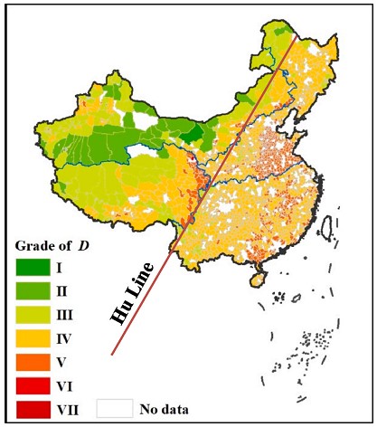 已有研究揭示了中國村鎮(zhèn)建設(shè)與資源環(huán)境耦合協(xié)調(diào)度空間格局整體上呈現(xiàn)“東高西低”,原創(chuàng)性地提出了耦合協(xié)調(diào)度在(0.70,0.80]等級(jí)的區(qū)域絕大部分分布在“北京—北海”一線(簡(jiǎn)稱“北北線”)以東的平坦地區(qū)(劉曉輝等,2023)。總體而言,我國縣域尺度村鎮(zhèn)建設(shè)與資源環(huán)境耦合協(xié)調(diào)研究相對(duì)薄弱,國內(nèi)外鮮見報(bào)道。