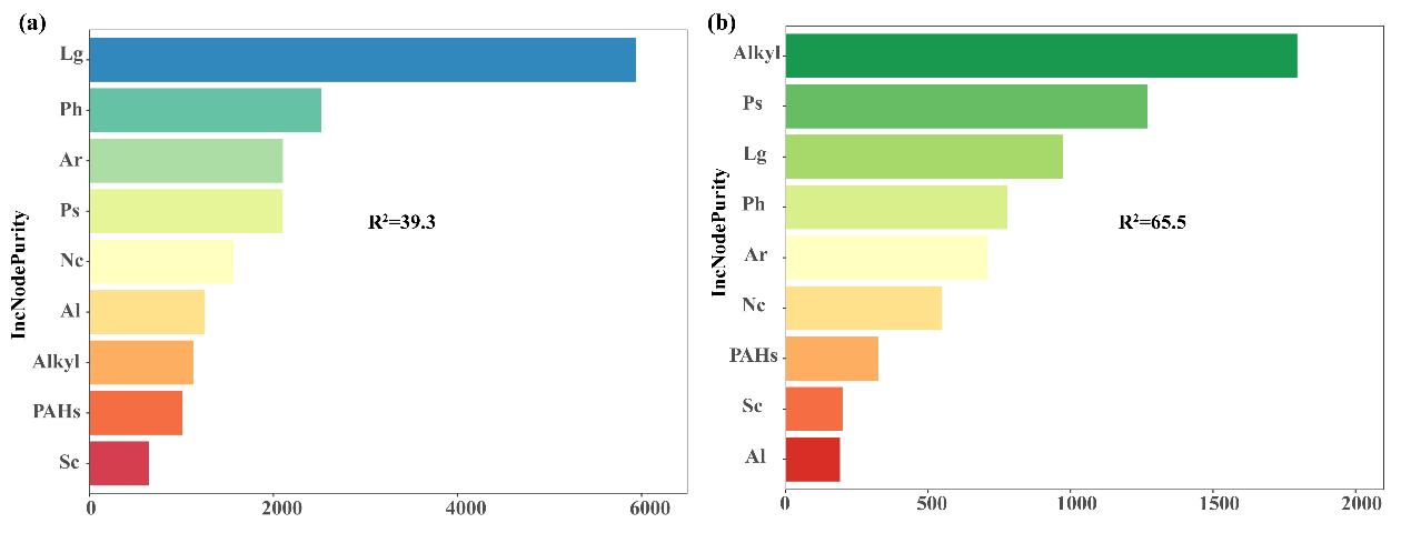 用隨機森林分析熱解產物對表土和底土中 SOC 穩定性的相對影響