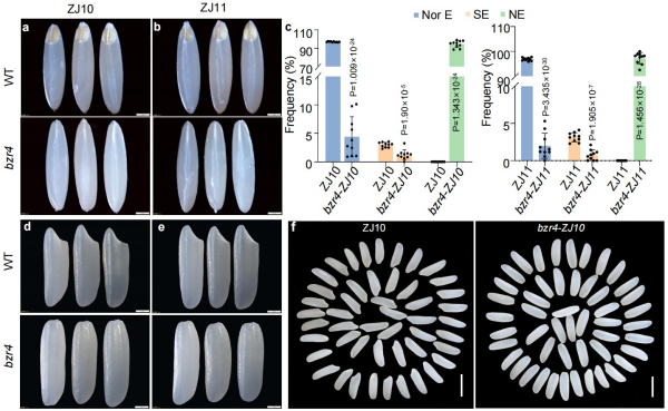 該研究首次揭示了通過調控OsBZR4可培育出具有溫度敏感型的無胚水稻種質,既能提高稻谷的精米產(chǎn)量,又能提高稻谷的耐儲性。在此基礎上,未來將嘗試創(chuàng)制一種溫度調節(jié)的無胚水稻種質,該種質可以在低溫條件下產(chǎn)生正常種子,用于繁殖,在常溫或高溫條件下產(chǎn)生高比例的無胚種子用于糧食生產(chǎn),來促進新型水稻生產(chǎn)技術的發(fā)展。