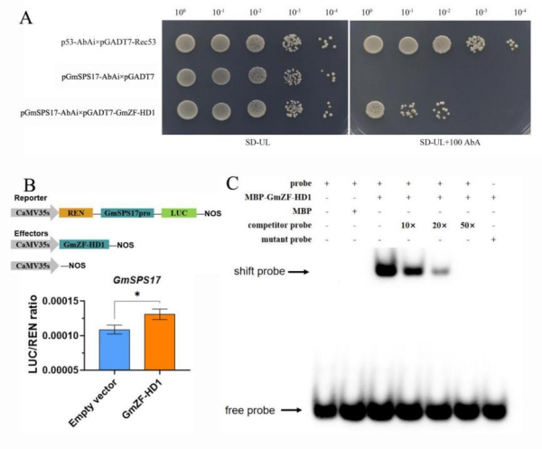 圖2?GmZF-HD1調(diào)控GmSPS17表達