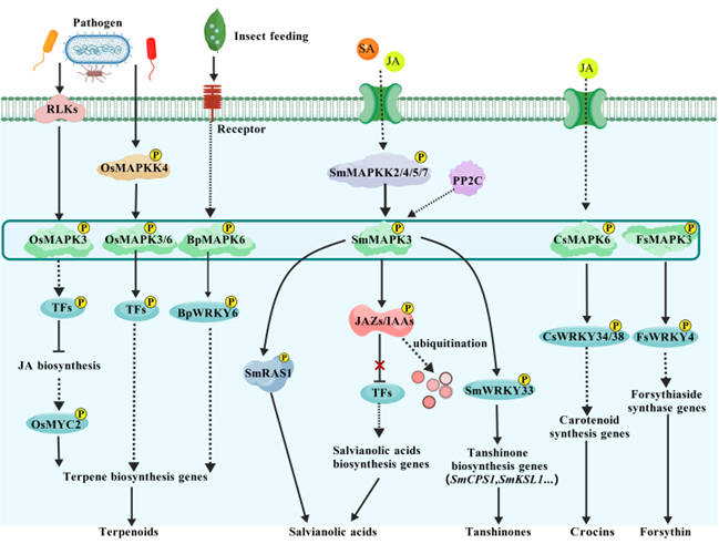 圖2. MAPK調控藥用植物活性成分合成的作用模式圖
