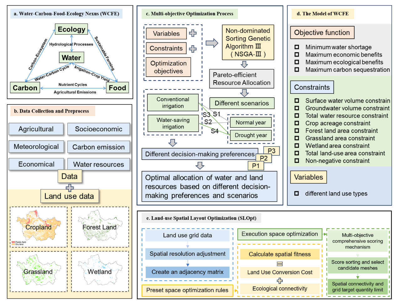 水資源與土地資源是農(nóng)業(yè)生產(chǎn)和生態(tài)系統(tǒng)維持的關(guān)鍵基礎(chǔ)要素,其配置方式直接關(guān)系到糧食安全、生態(tài)穩(wěn)定與區(qū)域可持續(xù)發(fā)展。在氣候變化與人類(lèi)活動(dòng)雙重作用下,水資源時(shí)空分布不均、農(nóng)業(yè)用水效率偏低及土地利用結(jié)構(gòu)不合理等問(wèn)題日益突出,水–糧–生態(tài)之間的矛盾不斷加劇。尤其在典型農(nóng)業(yè)集中區(qū),如何在有限水資源條件下統(tǒng)籌保障糧食生產(chǎn)、提升碳匯能力并兼顧生態(tài)保護(hù),已成為制約區(qū)域高質(zhì)量發(fā)展的核心科學(xué)問(wèn)題。